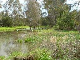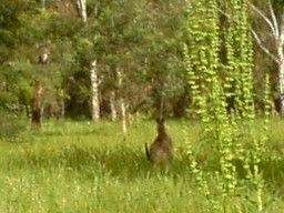 RMIT STUDENTS. On Thursday 6 October RMIT CaLM students started to plant out into their areas. They drew up a list of plants as part of their assignment and with some small changes, the plants were ordered from VINC. Their work removing the Trad has really opened up the views to the river. (Not enough room for pics so come and be impressed) BAT PROJECT The bat tubes have been checked twice since the last newsletter - on Saturday 10 September, and 8 October. There were 10 bats in September and 1 in October. All the bats were female and all in the same tube. The bats were measured and weighed. We now have a DSE permit for the bat project, and I have had vaccinations so that I am allowed to handle microbats. WILDLIFE The wildlife continues to amaze. While working at the reserve on 5 October I disturbed a grey kangaroo ![]() which bounded away. The ephemeral wetland refilled with the last rains and is popular with frogs and all sorts of waterbirds.