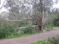 FALLING TREES The recent windy weather has caused a number of trees to shed branches, with the most devastation caused by a tree near the Chris Cross track and shared path intersection. The falling branch took down several other lower limbs, some small shrubs and left considerable debris in the reveg area.