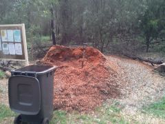 Thanks to City of Boroondara for organising the removal and the large pile of red gum mulch for our use. Thanks to the contractors for minimal disruption of our understorey plantings