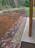 COMMUNITY WORK DAYS On the Friday work day we planted the plants left over from RMIT into the culvert and picnic areas. Other work has been "speed weeding" (slashing) around plantings in the 2008 area, picnic area banks, and between Burke Rd. bridge and 2013 RMIT area. FIRST FLOWERINGS The basalt daisy (Brachyscome multifida) and tufted bluebells (Wahlenbergia communis) which were planted this year are now coming prettily into flower. GUNYAH Work is proceeding on the 'Gunyah' with the roof run-off falling on to the drain covered in pebbles, the bank behind bricked and mulched. Seating is still planned. The grass has covered the edging and is nearing mowing height.